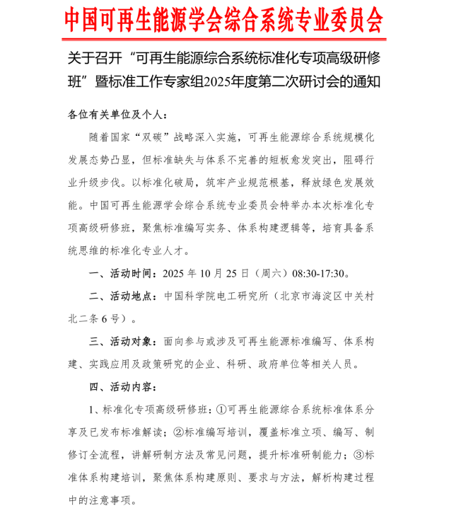 20251010关于召开“可再生能源综合系统标准化专项高级研修班”暨标准工作专家组2025年度第二次研讨会的通知.pdf