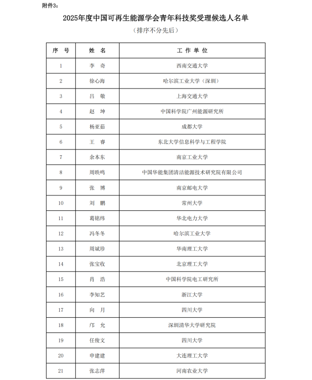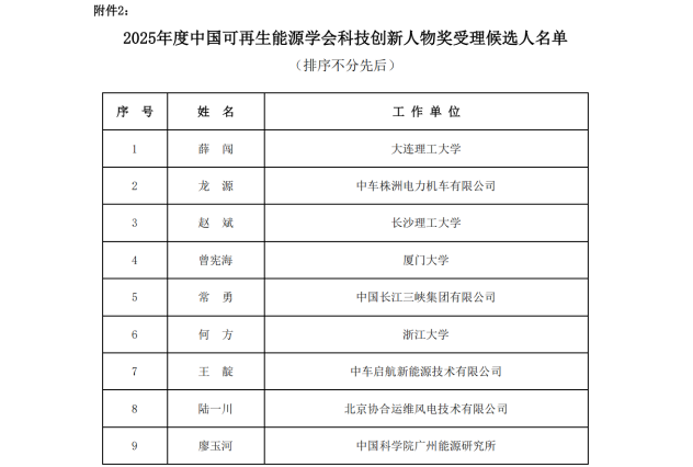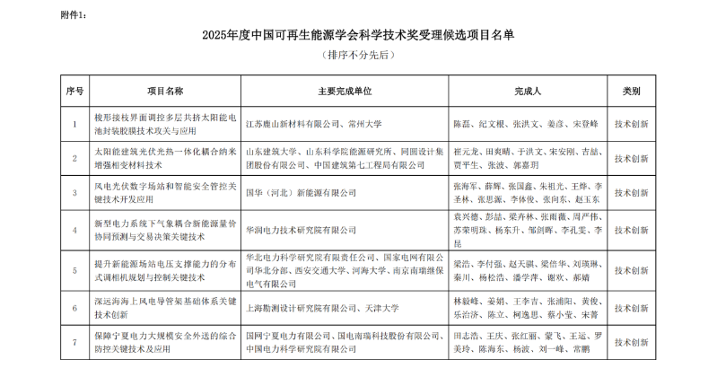 关于2025年度中国可再生能源学会科学技术奖受理情况公示